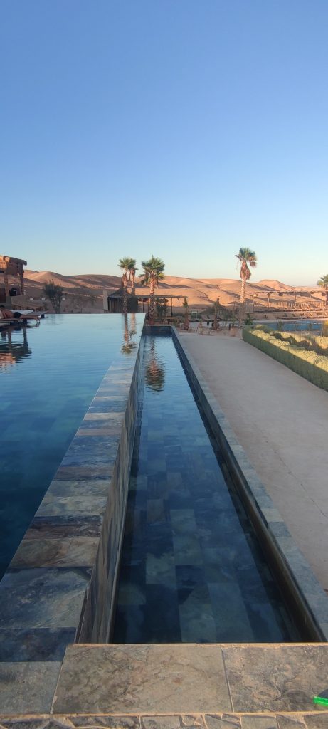 Imperdibile poi l’escursione al tramonto nel deserto di Agafay: bellissimo l’Agafay Luxury Camp, dove si può cenare e dal quale si può assistere ad un meraviglioso tramonto. Si possono anche fare escursioni in quad e a dorso di dromedario. Deve essere bellissimo anche trascorrere una notte in un campo tendato nel deserto. Il cielo stellato che si vede senza inquinamento luminoso (con tanto di Via Lattea) è davvero impagabile!
