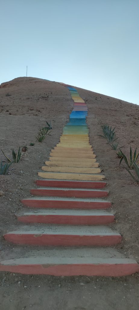 Viaggiando da Tangeri a Chefchaouen, percorrendo la strada interna del Marocco, si attraversa una zona montuosa, la catena del Rif, caratterizzata da un profilo di pale eoliche che si stagliano all’orizzonte sulla cresta delle alture.