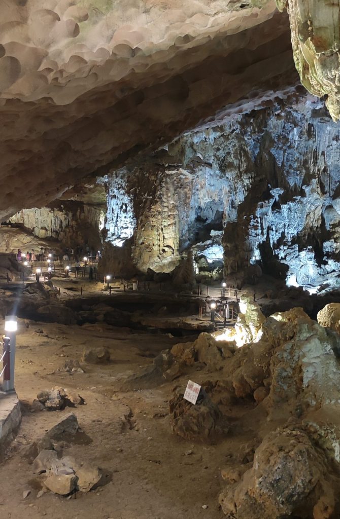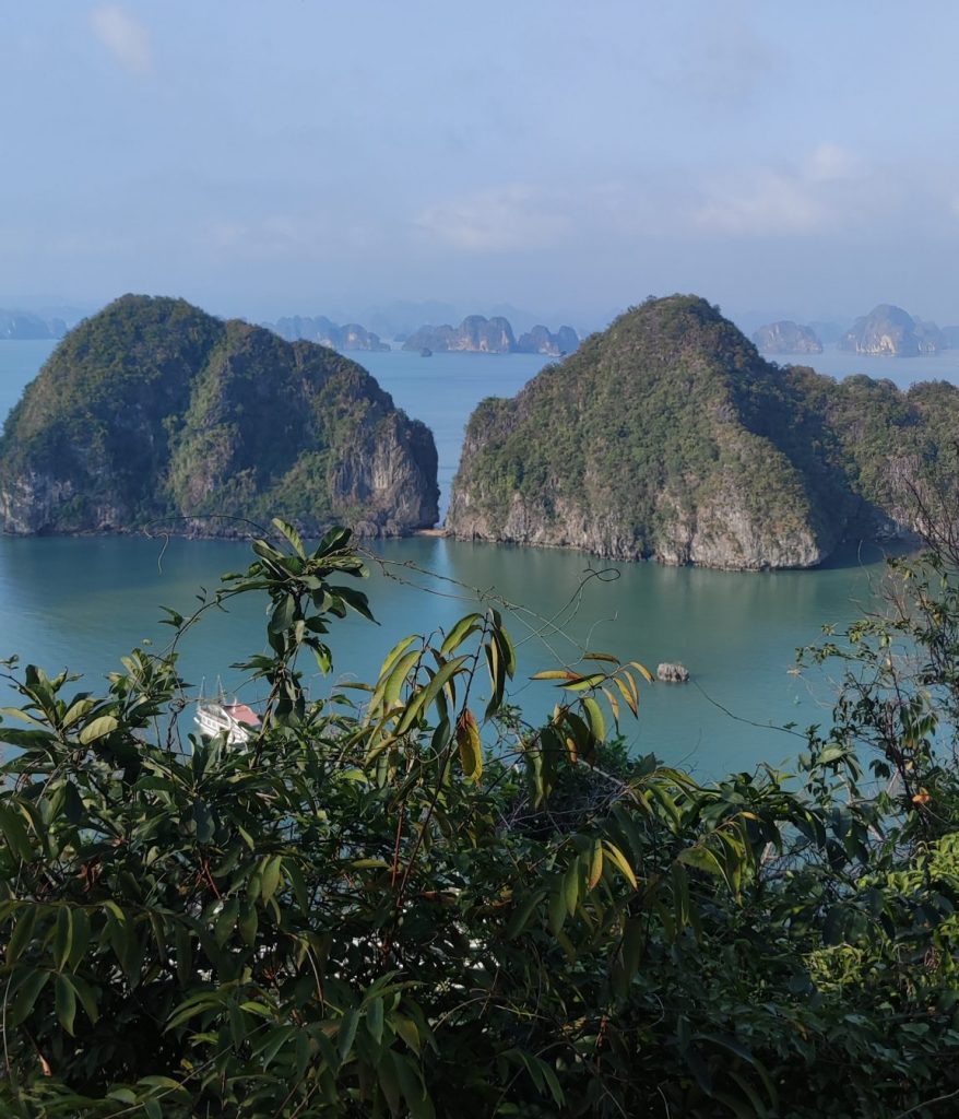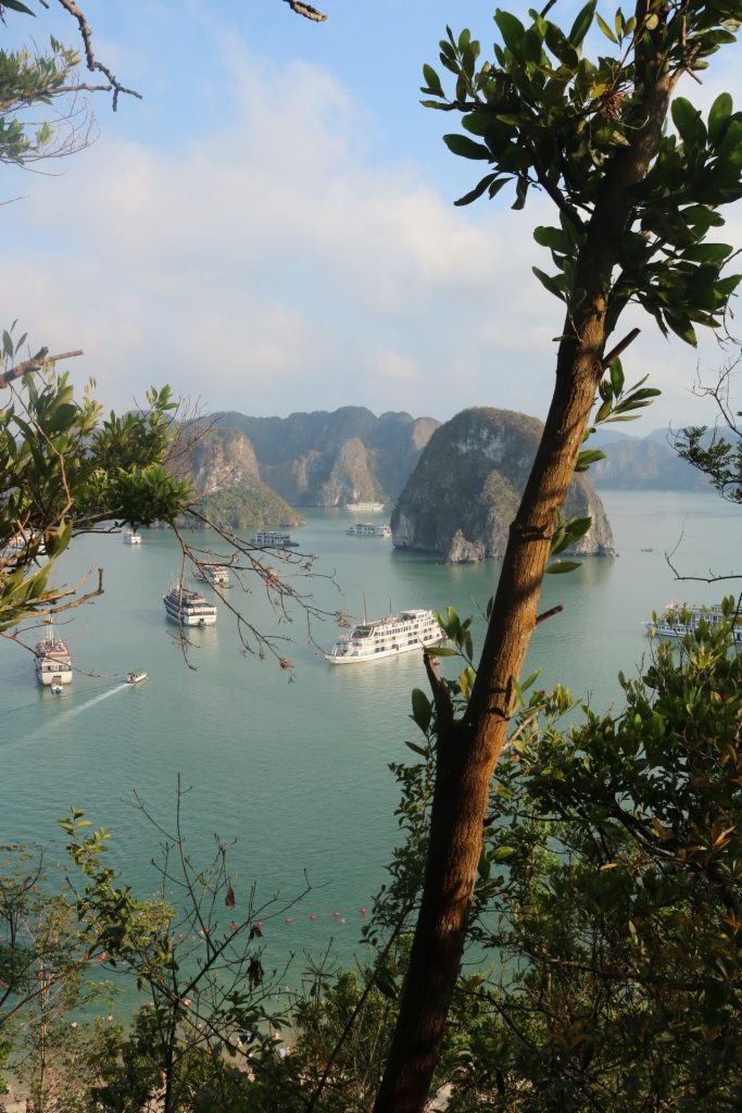 Ha Long significa il drago che scende. Si tratta di una straordinaria baia, una meraviglia della natura, formata da un’insenatura nella quale sono presenti circa 2.000 isolette calcaree monolitiche, ricoperte da una fitta vegetazione, che si stagliano sul mare. Da ciascuna imbarcazione sono organizzate numerose attività: giro in barca per vedere una grotta, possibilità di fare kayak, passeggiata a piedi per vedere il panorama dall’alto, bagni in spiaggia… La baia è bellissima e molto suggestiva, ma davvero tanto turistica. Ad Aprile, che non è ancora alta stagione, la quantità di gente ed imbarcazioni è impressionante, ma vale la pena visitarla!