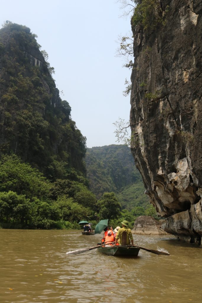 Traversata in piccole barchette, sulle quali si rema con i piedi, sul fiume Tam Coc (fiume di drago). Questa zona è considerata la Baia di Ha Long sulla terra, circondata da pittoreschi paesaggi, attraverso grotte naturali scavate dal fiume nella roccia carsica.