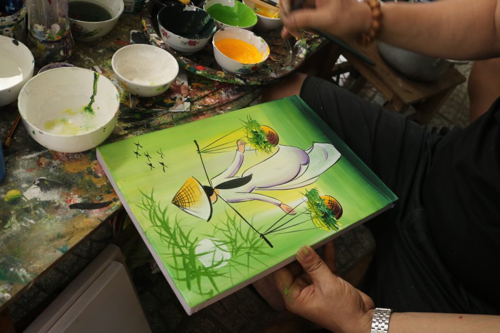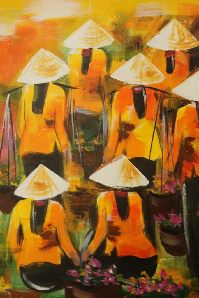 Con le biciclette siamo arrivati nello studio di un pittore locale (Duc Thanh), per vedere dal vivo come vengono realizzate le tele.